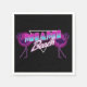 Ilustracion de diseño de texto "Miami Beach" de estilo retro con flamencos y decoración triangular de colores vivos azul, blanco y rosa en medio tono de fondo