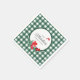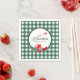 Una servilleta clásica para cualquier evento con ilustracion botánico de granadas rojas y patrón de gingham verde. Todo el texto se puede personalizar para ayudar a crear un accesorio personalizado para su evento especial, ya sea su picnic en el parque, la barbacoa de verano o la celebración de la reunión familiar!