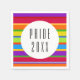 ¡Las servilletas para tu fiesta ORGULLO! Estas servilletas presentan un patrón de rayas multicolor con las palabras PRIDE 20XX en el centro. El texto se puede personalizar.