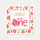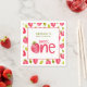 Toallas personalizadas para la fiesta de cumpleaños de fresa Berry First para la bebé que se vuelve dulce UNO. Fresas acuáticas, hojas y acentos florales blancos. Suministros de fiesta de primer cumpleaños de Berry.