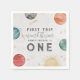 Primera excursión alrededor del espacio exterior solar Las toallas de papel de primer cumpleaños son la adición perfecta para cualquier fiesta de primer cumpleaños de un niño. Estas servilletas presentan un diseño de planetas acuarelas que se puede personalizar con cualquier nombre o texto y que lucirá genial con sus otras decoraciones de fiestas con temas astronautas o galaxiales.