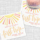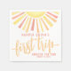 Primer Viaje Alrededor De La Napkin Del Primer Cumpleaños Del Sol. Este diseño luminoso y alegre de servilletas presenta un sol vibrante en la parte superior, con cálidos rayos en las clásicas sombrillas de amarillo, naranja y un toque de rojo, añadiendo un toque alegre y soleado a la celebración. Bajo el sol, "First Trip Around The Sun" se muestra en una divertida mezcla de fuentes modernas y tipografía de guiones audaces. Debajo, el nombre del niño de cumpleaños y la fecha del fiesta están elegantemente colocados, creando un detalle personalizado y festivo para el día especial. Los clásicos colores del sol lo hacen neutral en cuanto a género, perfecto para celebrar a un niño o chica de cumpleaños. Personalizable completo, puede actualizar el texto, las fuentes y los colores para que coincidan con el tema. ¡Una adición divertida y cálida a tu fiesta de primer cumpleaños con temática solar!