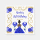 Esta invitación a la servilleta de cumpleaños incluye un marco dorado elegante, una bella princesa con piel oscura y un vestido azul real, flores y un globo. Esto es perfecto para una fiesta de cumpleaños.