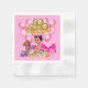 Ilustracion de una adorable bebé vestida de rosa, con el pelo en bollos con arcos rosas y tiara princesa. Rodeado de juguetes y con globos rosados y dorados encima con estrellas y pancartas lunares. Un regalo lindo para los padres que esperan, la ducha de bebé, la revelación de género o el regalo de cumpleaños del bebé.
