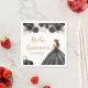 Esta servilleta de Quinceanera cuenta con una hermosa princesa vestida con un traje de bolas negras con arreglos florales. Es perfecto para una fiesta de cumpleaños de Quinceanera.