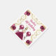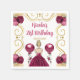 Esta invitación a la servilleta de cumpleaños tiene un marco dorado elegante, una bella princesa con el pelo rubio y un vestido rojo borgoñón, flores y un globo. Esto es perfecto para una fiesta de cumpleaños.