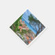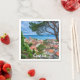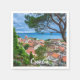 Vista del pequeño pueblo de Omis rodeado de montañas, río Cetina y mar, Riviera de Makarska, Croacia. Vista del pino, casco antiguo con tejados rojos y vista azul.