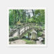 Un pintoresco puente de arco japonés se extiende con gracia sobre un estanque tranquilo, con un diseño elegante que refleja las aguas quietas de abajo. Rodeado de exuberante vegetación, el puente encapsula la belleza intemporal de la estética del jardín japonés.