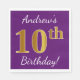 Servilleta De Papel Purple, Faux Gold 10 cumpleaños + Nombre personali