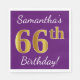 Servilleta De Papel Purple, Faux Gold 66th Birthday + Custom Name