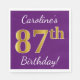 Servilleta De Papel Purple, Faux Gold 87th Birthday + Custom Name
