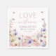 Personalize these beautiful love in bloom bridal shower napkins with your own wording easily and quickly, simply press the Edit Using Design Tool button to further re-arrange and format the style and placement of the text. Featuring exquisite delicate wildflower in soft pastel hues of blush, pink and purple and fluttering butterflies. All text is editable. For a seamless and coordinated look, explore our range of matching items available in-store. (c) The Happy Cat Studio