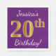 Servilleta De Papel Púrpura, Faux Gold 20 cumpleaños + Nombre personal
