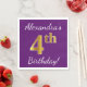 Servilleta De Papel Púrpura, Faux Gold 4Cumpleaños + Nombre Personaliz