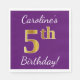 Servilleta De Papel Púrpura, Faux Gold 5 cumpleaños + Nombre personali