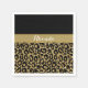 Perfecto para una fiesta de cumpleaños número 50 o una celebración de grandes logros, estas servilletas cuentan con un fondo de purpurina de oro de impresión 1/2 negro y 1/2 leopardo con texto de escritura blanca en el borde dorado medio que puede personalizar para que se ajuste a sus necesidades.