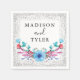 Esta servilleta de moda muestra los nombres de la pareja en un elegante guión negro en la parte superior, y un bonito colorido color azul acuarela floral disposición de flores en la parte inferior. Un purpurina de confeti plateado rompe el borde y el fondo blanco completa el diseño. Esta servilleta puede ser fácilmente personalizada con sus nombres personalizados, y es perfecta para un compromiso, boda o aniversario. Incluso puede cambiar el tipo de letra, el color del texto y el estilo del tipo de letra utilizando la opción personalizar.