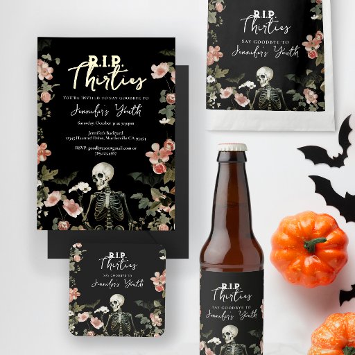 RIP to My Thirties Skeleton Floral Birthday PartyDiseñado por Gloria Shen