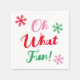 Esta servilleta de periódico festivo presenta un guión moderno de caligrafía que dice "¡Qué Diversión!" en rosa, rojo y verde con la coordinación de copos de nieve. El aspecto es divertido, moderno y festivo.