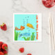 Funny toallas de papel de cóctel de diseño con peces nadando en naranja, azul y amarillo. Personalice el texto para que se ajuste a su ocasión especial. El color de fondo azul claro se puede cambiar a su color pastel favorito para coordinar los colores de los eventos. Diseño divertido para cabaña o centro de pesca.