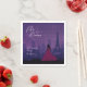 Celebra tu quinceañera con este dramático diseño de una noche parisina en tonos oscuros de púrpura y rosa. La silueta de París incluye la Torre Eiffel y otros monumentos bajo un cielo nocturno lleno de fuegos artificiales explotando. También disponible en combinaciones de rosa borgoña y azul pizarra/rosa. Invitaciones y artículos de fiesta coordinados disponibles. También apropiado para una fiesta de sweet sixteen.