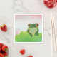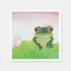 Rana verde Relajación sobre la seguridad de la plataforma de lirio en el estanque. Las toallas de lirio son un importante escondite para las ranas. Ilustracion de libro de un libro para niños: '¡MIRA, UN FROG!' (Escrito e ilustrado por Julia Doria) Un regalo perfecto para rana y amante de la naturaleza. Rana en diseño de estanque. Rana dibujando en estanque.