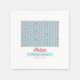 Una serie de colecciones de SHRIMP-LY Beautiful presenta un estilizado patrón de camarones dibujado a mano en un esquema de color verde azulado y rosa. Estas servilletas son un complemento para celebrar el nacimiento de un bebé de manera islámica según sunnah Rasulullah. Con el texto del personalizable para el nombre del bebé, y el evento en sí puede cambiarse a ducha de bebé o dejarlo con la palabra aqiqah. Que Alá se dé la bendición y el barokah en tu familia en presencia de este bebé.
