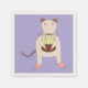 Este impresionante paquete de servilletas de papel presenta una imagen gráfica de una adorable rata elegante siamesa con un cuerpo color crema, pies y patas rosas, orejas marrones, nariz y cola y pequeños ojos rojos. La rata dulce está sosteniendo una deliciosa tarta de cumpleaños en sus patas. La tarta es una torta de chocolate recubierta de helado amarillo pálido y llena de mermelada roja. Hay nueve velas encendidas encima del pastel.