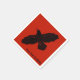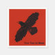 Una silueta simple y negra de un Raven (Corvus corax) sobre un fondo rojo. La imagen del cuervo ha sido ligeramente "áspera" o "desgastada". Añade tu propio texto.