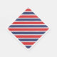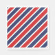 Se muestra la servilleta de papel para fiesta en tamaño para almuerzo blanco con una impresión de rayas rojas, blancas y azules.
