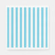 Se muestra la servilleta de papel para fiesta en tamaño para almuerzo blanco con un estampado de rayas azules y blancas.