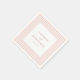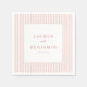 Estas servilletas de boda presentan un diseño minimalista y elegante con rayas verticales rosadas en diferentes tonos, creando un fondo sutil pero sofisticado. El cuadrado blanco central destaca los nombres y la fecha en tipografía clásica serif y sans-serif, ofreciendo un toque personalizable para la personalización. La paleta de colores pastel suaves de rosados claros y blancos evoca un ambiente romántico y atemporal, perfecto para celebraciones formales. Las líneas limpias y la composición equilibrada aseguran una estética moderna y discreta, lo que hace que estas servilletas sean una opción ideal para bodas que abrazan la simplicidad y el encanto.