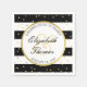 Esta elegante y moderna servilleta de fiesta para el aniversario presenta un atrevido fondo de rayas blancas y negras con puntos dorados rociados a lo largo de la frontera. Personalizar el color de fondo para que coincida con el tema del evento. Visita nuestra colección "Sparkling Stripes" para ver todos los productos a juego.