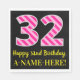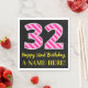 Este divertido diseño de servilletas de papel con temática de cumpleaños incluye un gran número "32" con un patrón de rayas rosa claro y rosa oscuro, junto con el mensaje "Feliz cumpleaños número 32", y un nombre personalizado. El fondo es negro de color. Las servilletas de papel con temas de cumpleaños como esta pueden ser divertidas de usar en un fiesta que se celebra el 32 aniversario de alguien. [~Z0000380]