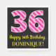 Este divertido diseño de servilletas de papel con temática de cumpleaños cuenta con un gran número "36", con un patrón de rayas rosa claro y rosa oscuro. También incluye el mensaje "Feliz cumpleaños número 36", y un nombre editable. El fondo es negro de color. Las servilletas de papel con temas de cumpleaños como esta pueden ser divertidas de usar en un fiesta que se celebra para celebrar el 36 cumpleaños de alguien. [~Z0000380]