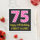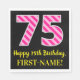 Este divertido diseño de servilletas de papel con temática de cumpleaños incluye un gran número "75" con un patrón de rayas rosadas oscuras y rosas claras, junto con el mensaje "Feliz cumpleaños número 75", y un nombre personalizado. El fondo es negro de color. Divertidas, servilletas editables de papel como esta podrían ser usadas en una celebración que se lleva a cabo para honrar el cumpleaños setenta y cinco de alguien. [~Z0000380]