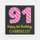 Este divertido diseño de servilletas de papel con temática de cumpleaños presenta un gran número "91", con un patrón de rayas rosa oscuro y rosa claro. También incluye el mensaje "Feliz cumpleaños número 91", y un nombre de personalizable. El fondo es negro de color. Las servilletas de papel temáticas de cumpleaños como esta pueden ser divertidas de usar en una celebración que se lleva a cabo para honrar a alguien que está celebrando su cumpleaños 91. [~Z0000380]