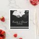 Elegantes rayas blancas y flores sobre fondo negro. plantilla de servilletas de papel de personalizable