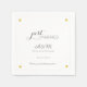 Un diseño elegante y de moda en una servilleta blanca y clara para tu fiesta nupcial, con pequeños corazones falsos de oro y las palabras "recién casados", iniciales, nombres y fecha especial... para darle un toque personalizado a tu recepción nupcial.