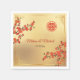 This Chinese wedding napkins feature a golden Chinese frame red cherry blossoms and a red double happiness symbol on a gold background. Bride and groom names in a traditional elegant script.
