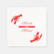 Estas servilletas de cóctel personalizadas cuentan con las siluetas de dos langostas rojas con un fondo blanco. Añade tus nombres o información especial sobre eventos.