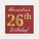 Servilleta De Papel Red, Faux Gold 26th Birthday + Custom Name