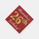 Este sencillo diseño de servilletas de papel muestra un mensaje como "¡El vigésimo sexto cumpleaños de Alexandra!", con el "26º" en falso aspecto dorado, sobre un fondo de color rojo. El nombre se puede personalizar. Podría ser usado en una fiesta de cumpleaños para alguien que está celebrando su 26º cumpleaños. [~Z0000080]