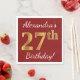 Este sencillo diseño de servilletas de papel muestra un mensaje como "¡El cumpleaños 27 de Alexandra!", con el "27" en un falso aspecto dorado, en un fondo de color rojo. El nombre se puede personalizar. Podría ser usado en una fiesta de cumpleaños para alguien que está celebrando su cumpleaños veintisiete. [~Z0000080]