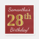 Este sencillo diseño de servilletas de papel muestra un mensaje como "¡Cumpleaños 28 de Samantha!", con el "28" en un falso aspecto dorado, en un fondo de color rojo. El nombre se puede personalizar. Podría ser usado en una fiesta de cumpleaños para alguien que está celebrando su 28 cumpleaños. [~Z0000080]