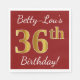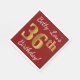 Este sencillo diseño de servilletas de papel muestra un mensaje como "¡El 36 cumpleaños de Betty-Lou!", con el "36" en apariencia de oro falso, sobre un fondo de color rojo. El nombre se puede personalizar. Podría ser usado en una fiesta de cumpleaños para alguien que está celebrando su 36º cumpleaños. [~Z0000080]