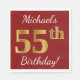 Este sencillo diseño de servilletas de papel muestra un mensaje como "¡55 cumpleaños de Michael!", con el "55" en apariencia de oro falso, sobre un fondo de color rojo. El nombre se puede personalizar. Podría ser usado en una fiesta de cumpleaños para alguien que está celebrando su 55º cumpleaños. [~Z0000080]
