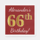 Servilleta De Papel Red, Faux Gold 66th Birthday + Custom Name