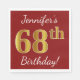 Este sencillo diseño de servilleta de papel muestra un mensaje como "¡El cumpleaños número 68 de Jennifer!", con el "68" en falso aspecto dorado, sobre un fondo rojo de color. El nombre se puede personalizar. Se podría usar en una fiesta de cumpleaños para alguien que esté celebrando su sexagésimo octavo cumpleaños. [~Z0000080]