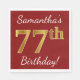 Servilleta De Papel Red, Faux Gold 77th Birthday + Custom Name